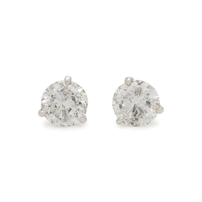 Containing two round brilliant cut diamonds weighing approximately 2.05 carats total. Mounted in white gold.