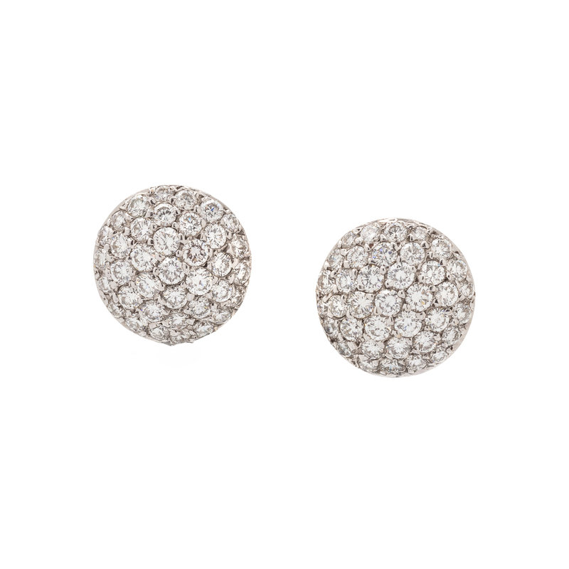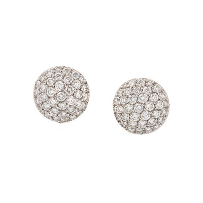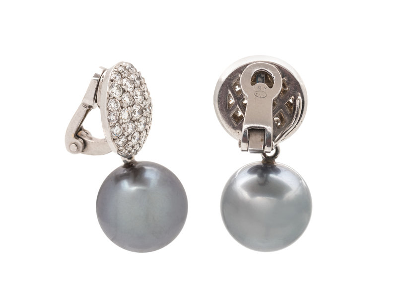 Containing 74 round brilliant cut diamonds weighing approximately 1.40 carats total, with removable Tahitian pearl drops measuring approximately 12.00 mm in diameter. Mounted in white gold.