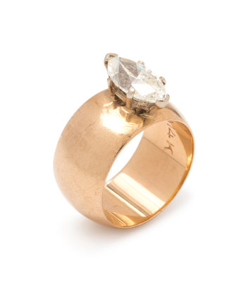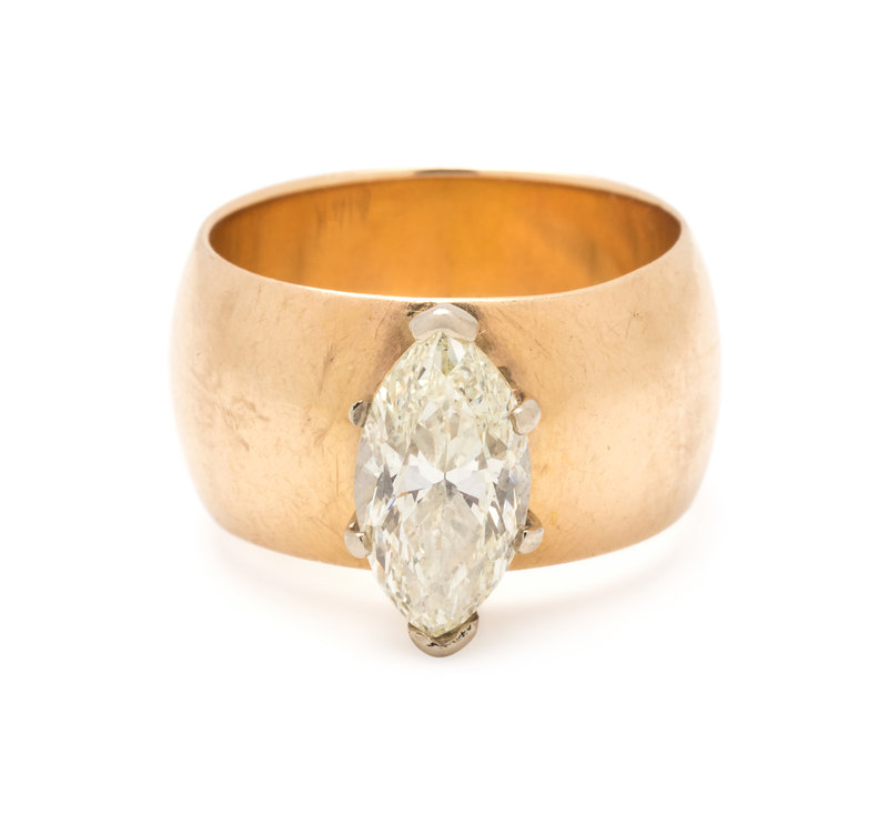 Containing one marquise cut diamond weighing approximately 1.50 carats. Mounted in yellow gold.