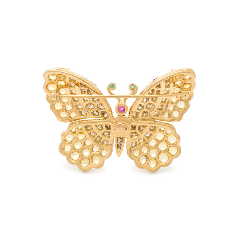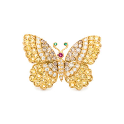 JEAN VITAU, DIAMOND, COLORED DIAMOND AND MULTIGEM BUTTERFLY BROOCH