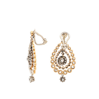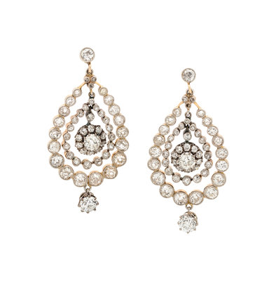 Containing numerous old mine, old European, single and mixed cut diamonds weighing approximately 4.75 carats total. Mounted in platinum topped gold and silver.