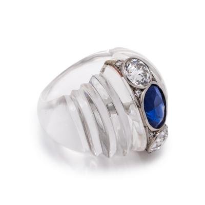 ROCK CRYSTAL, SAPPHIRE AND DIAMOND RING