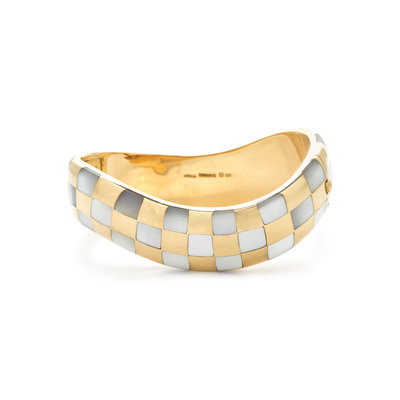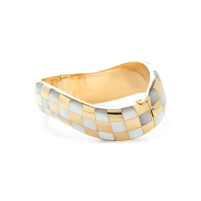 ANGELA CUMMINGS, YELLOW GOLD AND MOTHER-OF-PEARL BANGLE BRACELET