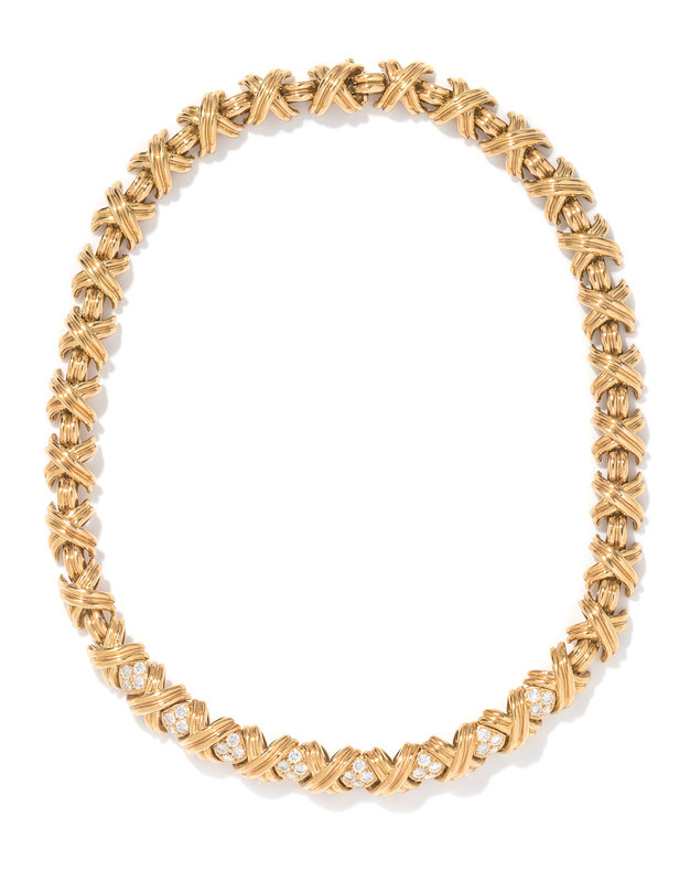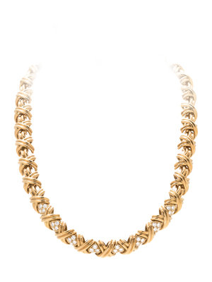 TIFFANY & CO., YELLOW GOLD AND DIAMOND 'X' COLLAR NECKLACE