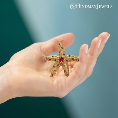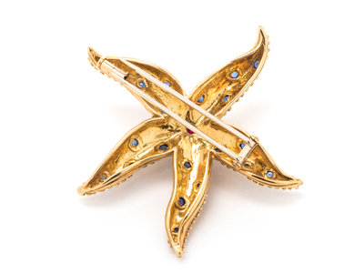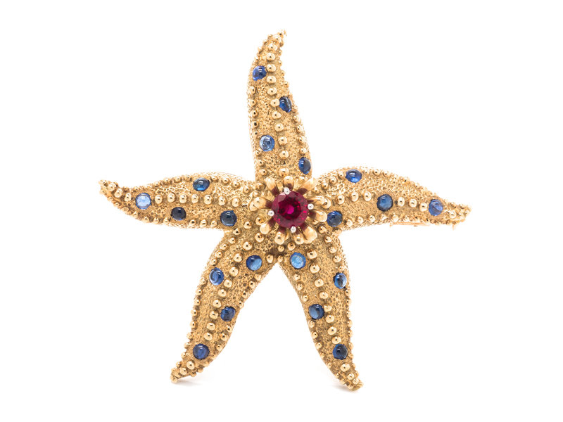 TIFFANY & CO., SCHLUMBERGER, YELLOW GOLD, RUBY AND SAPPHIRE STARFISH BROOCH