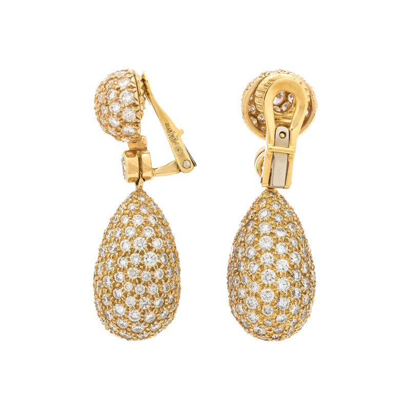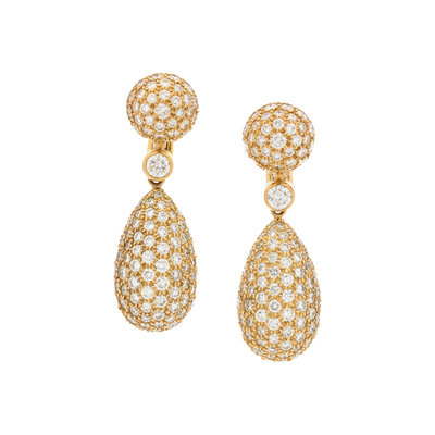 Containing two round brilliant cut diamonds weighing approximately 0.40 carat total and numerous round brilliant cut diamonds weighing approximately 5.30 carats total. Mounted in yellow gold.