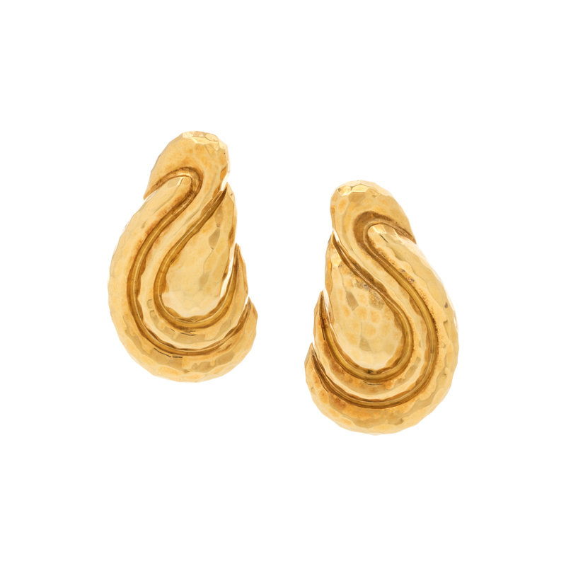 HENRY DUNAY, YELLOW GOLD EARCLIPS