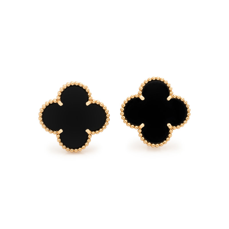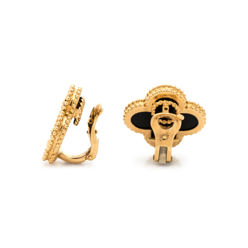 VAN CLEEF & ARPELS, ONYX 'ALHAMBRA' EARCLIPS