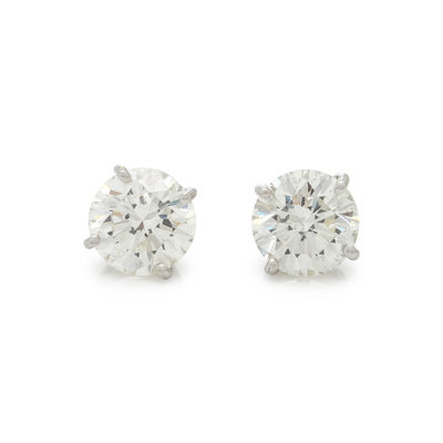 Containing two round brilliant cut diamonds weighing approximately 5.00 carats total. Mounted in white gold.