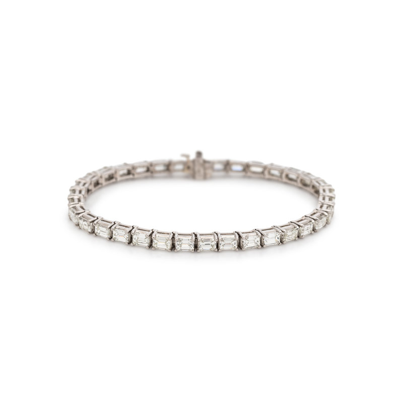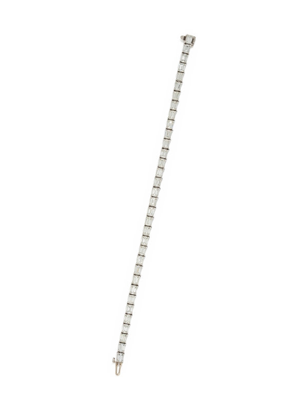 Containing 34 emerald cut diamonds weighing approximately 11.50 carats total. Mounted in platinum.
