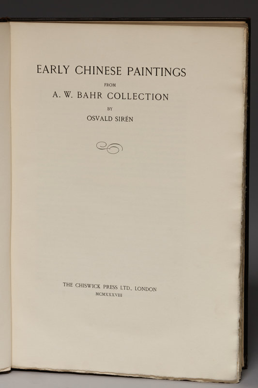 [With:] Early Chinese Painting from the A.W. Bahr Collection. London: Chiswick Press Ltd, 1938. 409 x 283 mm. Numerous plates, some in color. Brown gilt cloth, LIMITED EDITION number 354 of 700 copies.