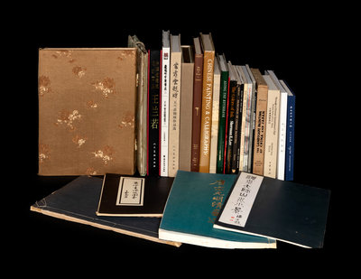 Along the Riverbank: Chinese Painting in From the C.C. Wang Family Collection. New York, 1999.—YANG, Kathleen, Through a Chinese Connoisseur's Eye. Private Notes of C.C. Wang. Beijing, 2010.—EDWARDS, Richard. Through the Field of Stones. Washington, D.C. Clark Family Collection ex libris., 1962.—LAWTON, Thomas. Chinese Figure Painting. Washington, D.C., 1973.—Chinese Painting and Calligraphy. Beijing, 1984.—SILBERGELD, Jerome. Chinese Painting Style. Seattle, 1982.—ROWLEY, George, Principles of Chinese Painting, Revised Edition. Princeton, 1974.—LEE. Sherman E. The Colors of Ink. New York, 1974.—LEEKNEY, Friedrich Alfred. Portfolio of prints, 20th century.—Living Water. The Life Journey of Ruby H. Wang. Melbourne, 2018. —Ruby H. Wang Collection. Exhibition Catalogue. Beijing, 2016.—Zhongguo jinxiandai mingjia huaji. Wang Lan Ruo. Beijing, 2011.—Wang Lan Ruo. Huang Wen Feng juan zeng shu hua ji. Guangdong, 2013.—Zuo kan yun qi shi. Wang Lan Ruo qi gu zuo pin xuan. Beijing, 2013.—Beyond the Open Door. Contemporary Paintings from the People's Republic of China. Pasadena, 1987.—Passion for the Mountains: Seventeenth Century Landscape Paintings from the Nanjing Museum. New York, 2003.—The Eccentric Painters of Yangzhou. New York, 1990.—Tang Song Yuan Ming Qing Huaji. Hong Kong.—Haisu da shi shanshui xiao jing. Singapore, 1975. Signed and sealed with a dedication from the artist.—Wu Zhong Gui Yufu tujuan. Taipei, 1977. And others, together 27 single volume works.