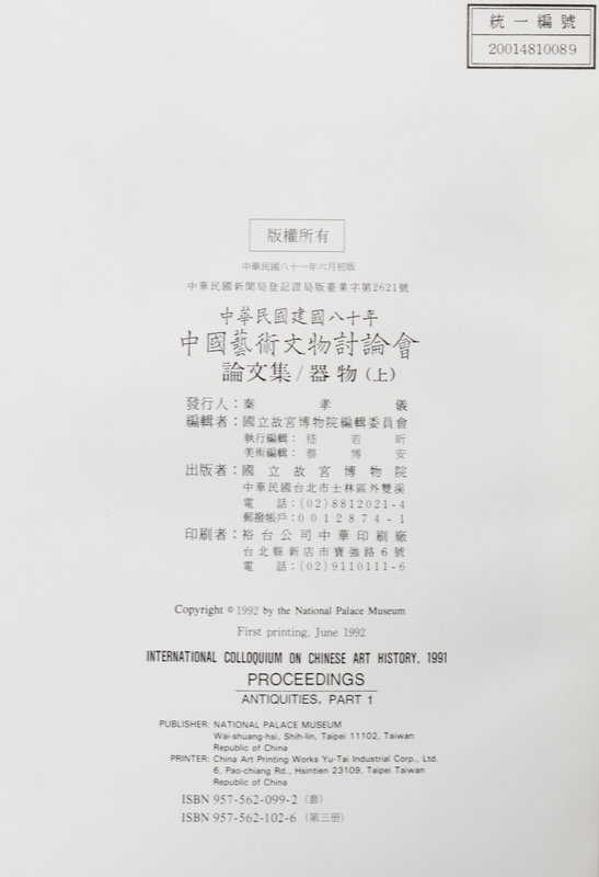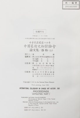 International Colloquium on Chinese Art History: Proceedings. Taipei: National Palace Museum, 1991.