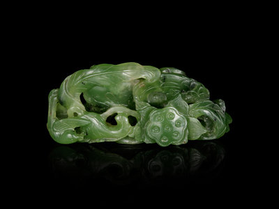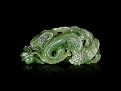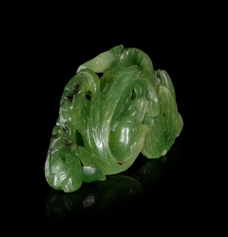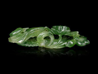 A Spinach Green Jade 'Goose and Lotus' Carving