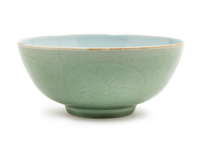 An Large Incised Celadon Ground Porcelain 'Lotus' Bowl