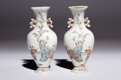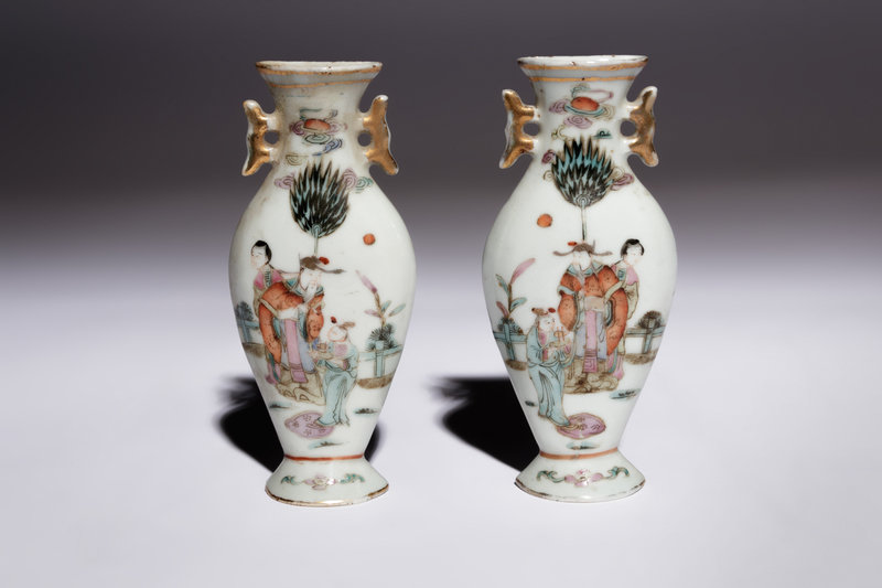 清晚期 粉彩畫人物圖壁瓶兩對