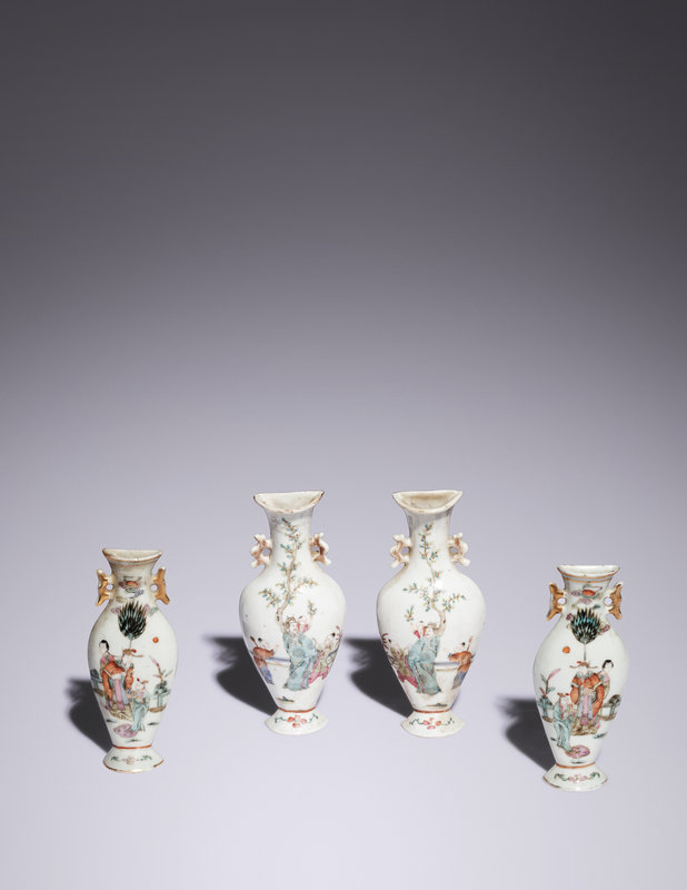Two Pairs of Famille Rose Porcelain Wall Vases