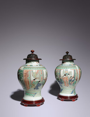 A Pair of Wucai Porcelain 'Figural' Baluster Jars
