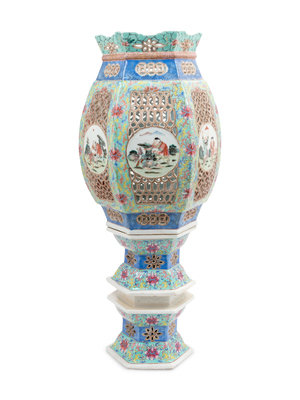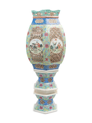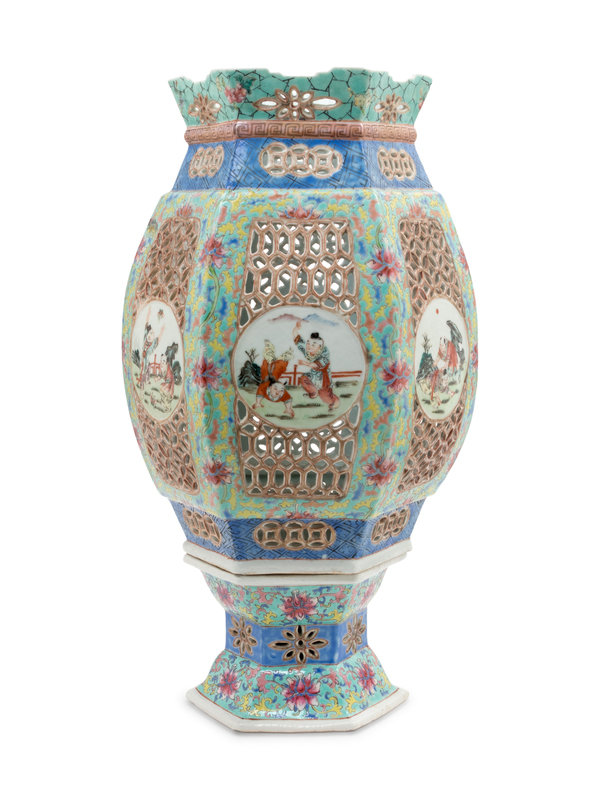 清十九世紀 粉彩鏤雕嬰戲圖六方燈
