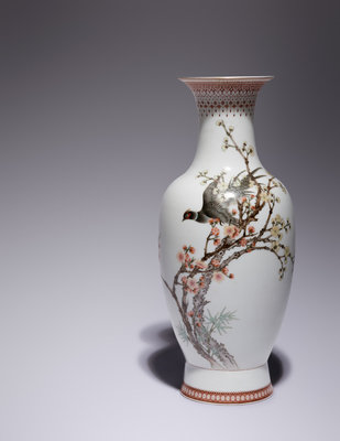 中國景德鎮特製款 薄胎粉彩喜上眉梢瓷瓶