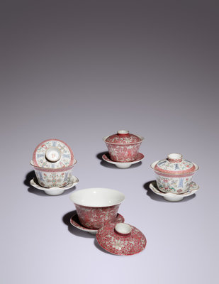 Two Pairs of Famille Rose Porcelain Tea Cups