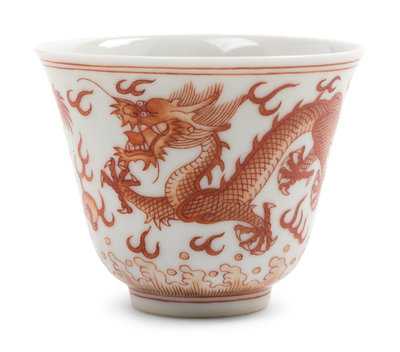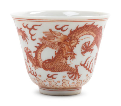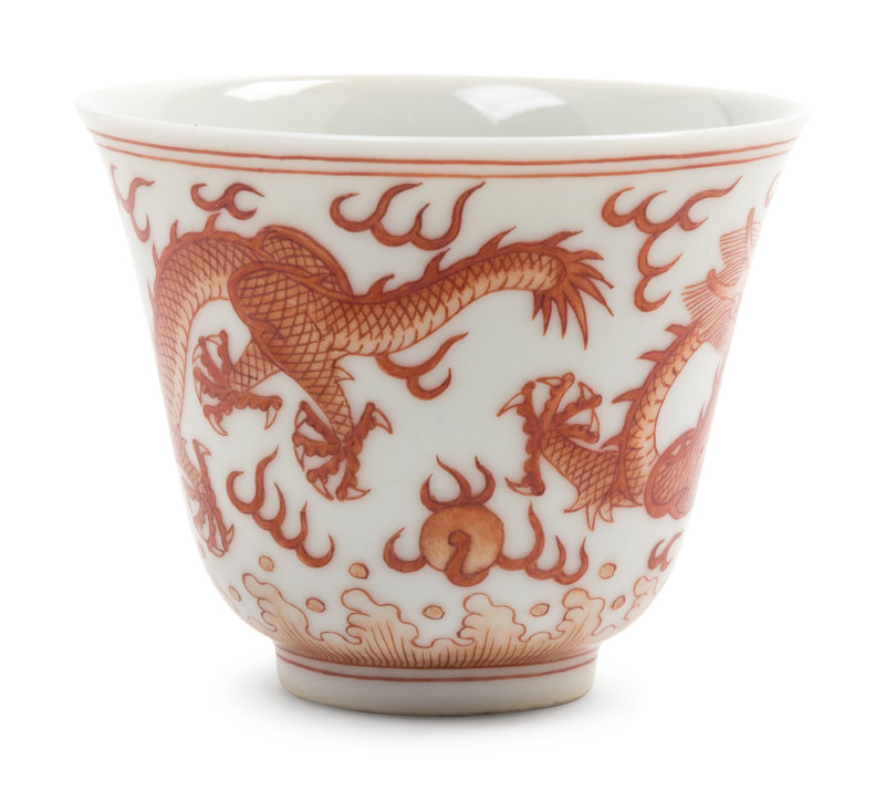An Iron Red Porcelain 'Dragon' Wine Cup
