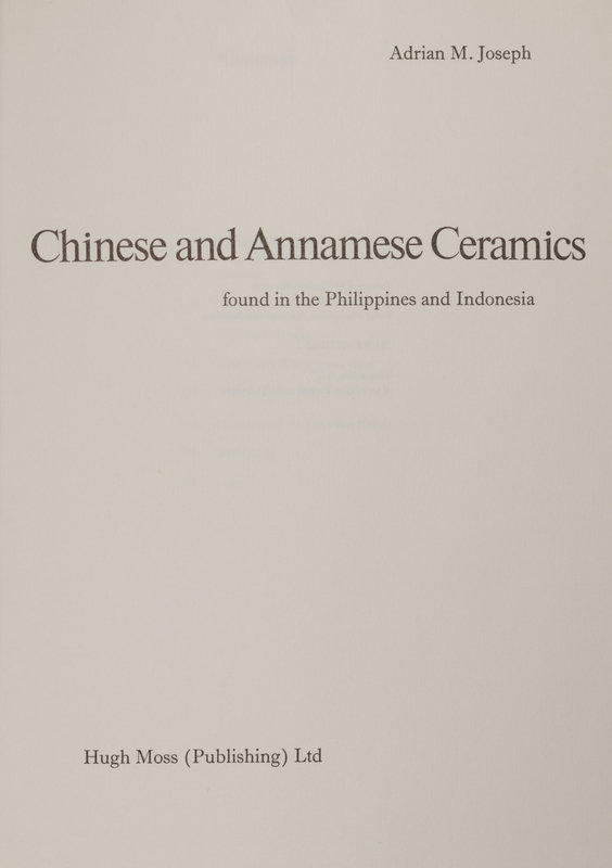 BUSHELL. S. W. Oriental Ceramic Art Collection of W. T. Walters, 1896.—MASAHIKO Sato and GAKUJI Hasabe. Ceramic Art of the World. 1976. (2 volumes).— JOSEPH, Adrian M. Chinese and Annamese Ceramics found in the Philippines and Indonesia, 1973.—The Ceramic Art of China: An Exhibition Organised by The Art Council of Great Britain and The Oriental Ceramic Society to Commemorate the Founding of the Society in 1921,1972. —HOWARD, David Sanctuary. Chinese Armorial Porcelain. 1974. Together 5 works in 6 volumes.