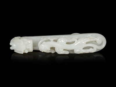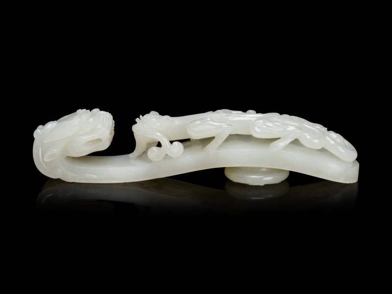 A Large and Finely Carved White Jade 'Chilong' Belt Hook