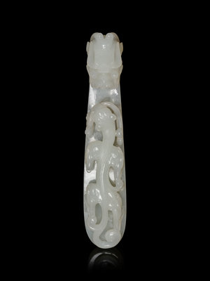 清十八世紀 白玉透雕螭龍紋帶鉤