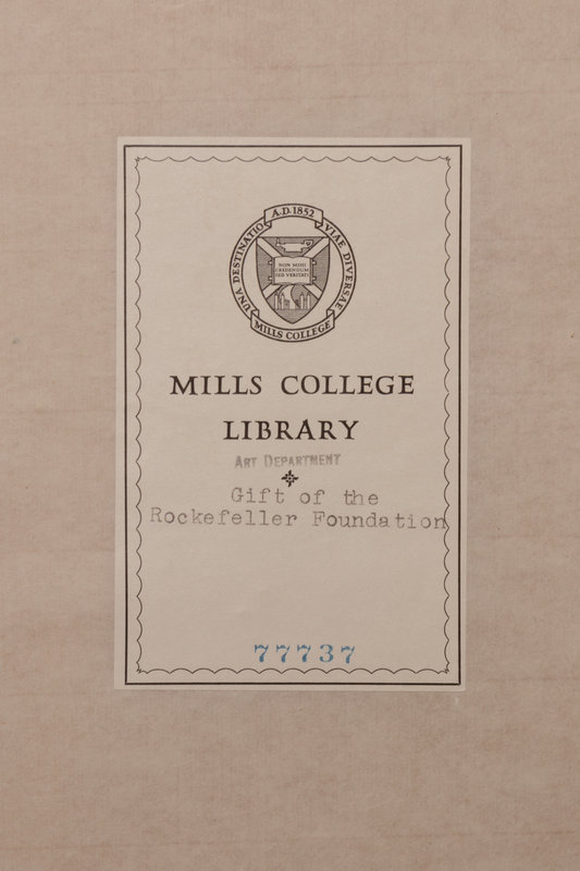 本套《銅版西清》出自加州奧克蘭市著名的密爾斯文理學院,是洛克菲勒基金會贈予該校的禮物,每冊扉頁鈐有洛氏基金會印章,附藏書票,書後則貼有圖書館的卡片,意義非凡,值得珍藏。