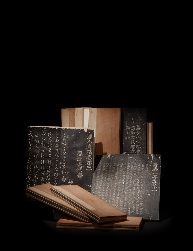 10 volumes, 305 x 142 mm. Qing dynasty edition. Folded albums mounted between bamboo boards. Volumes ten and eleven (of twelve) not present. Provenance: C.T. Loo (inkstamp).