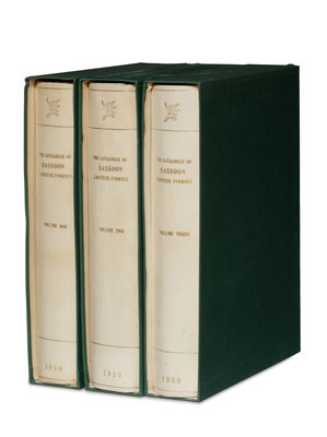 FIRST EDITION, LIMITED ISSUE number 91 of 250 sets signed by Sir Victor Sassoon and Sydney Edward Lucas. Catalogue of the substantial ivory collection, including objects from imperial collection and purchased from Manchu families, acquired by Sir Victor Sassoon during years 1915-1927 in Beijing.