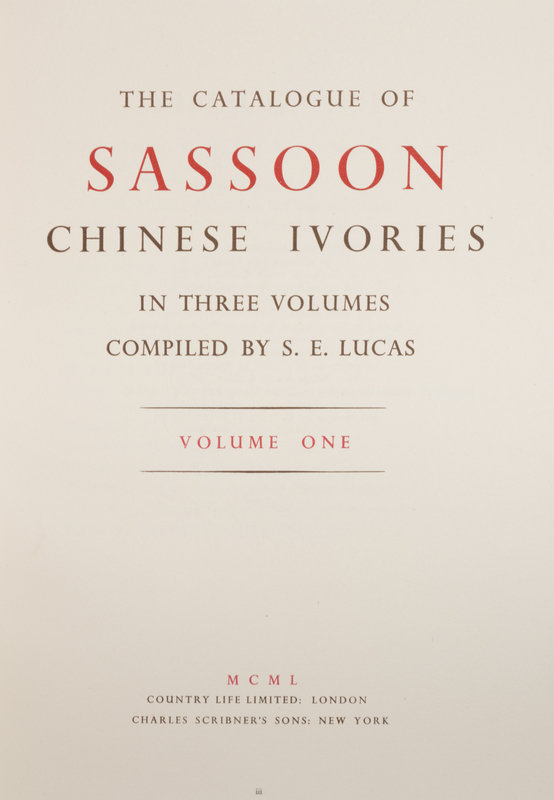 LUCAS, Sydney Edward, compiler. The Catalogue of Sassoon Chinese Ivories. London: Country Life and New York: Charles Scribner's, 1950.
