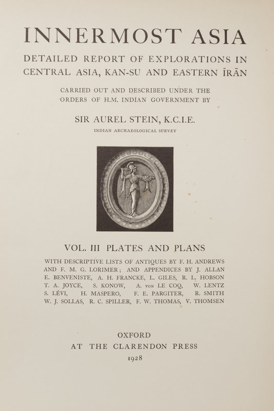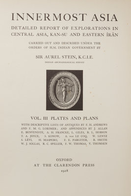 STEIN, Marc Aurel (1862-1943). Innermost Asia: Detailed Report of Explorations in Central Asia, Kan-Su and Eastern Iran. Oxford: Claredon Press, 1928.