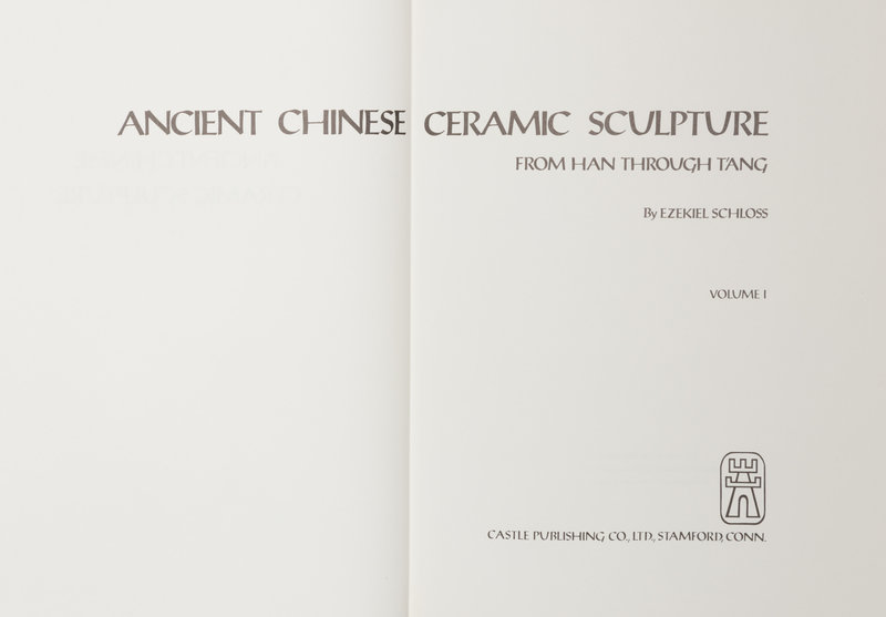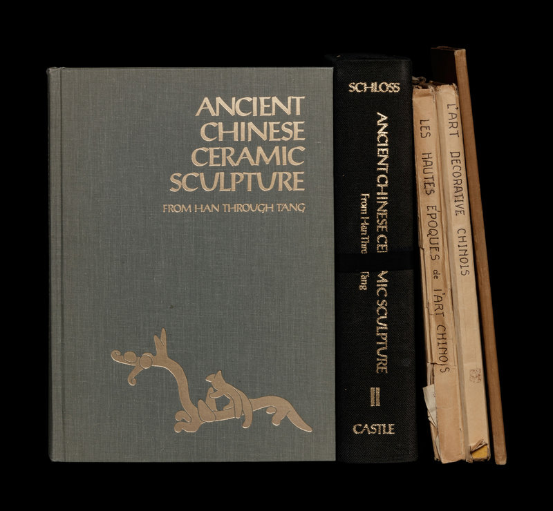 SCHLOSS, Ezekiel. Ancient Chinese Ceramic Sculpture from Han Through T'ang in the Collection of Mr. and Mrs. Ezekiel Schloss I-II. Stamford: Castle Publishing Co., Ltd., 1977.—A Chinese Buddhist Stele of the Wei Dynasty in the Collection of the Art Institute of Chicago. Chicago: Oriental Publication, 1927.—L'Art Decoratif Chinois d'apres les Collections du Musee Cernuschi. Paris: Editions Nilsson, 1920. Together 3 works in 5 volumes.