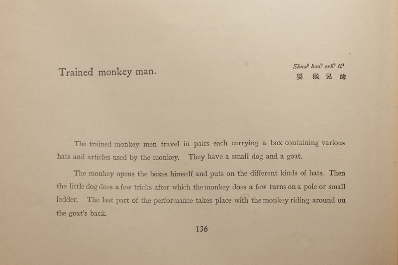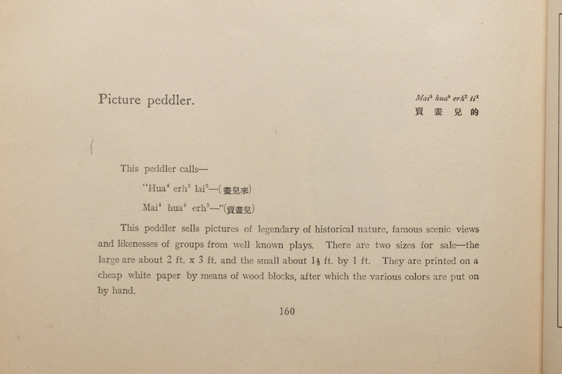 本書作者康士丹是上世紀初美駐華使館武官。康氏駐京十餘年,直奉戰爭期間,曾作為美方觀察員隨軍。本書是他的碩士論文,以極具民初風韻的五彩錦面裝訂,附61禎石印彩图,16枚黑白照片,以四季為類,記錄了五十余種老北京胡同中的叫賣聲。北平貨郎如今早已不存,偶在洋人的筆記舊影中,還可一窺。