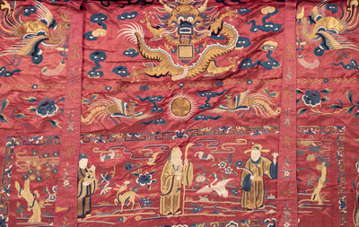 清光緒 1878年作紅地刺繡仙人祝壽掛帳