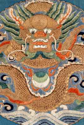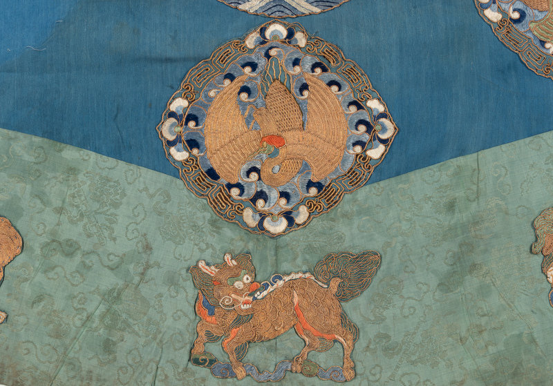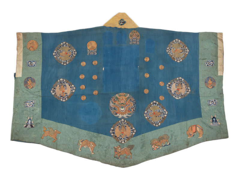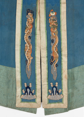 清十九世纪 睛藍地盤金繡游龍瑞獸纹道袍