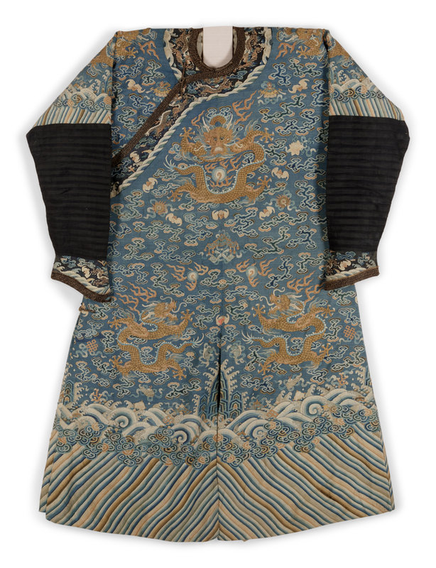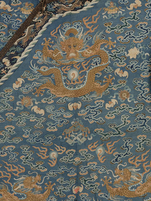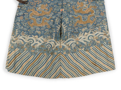 A Blue Ground Kesi Woven Silk Dragon Robe, Jifu