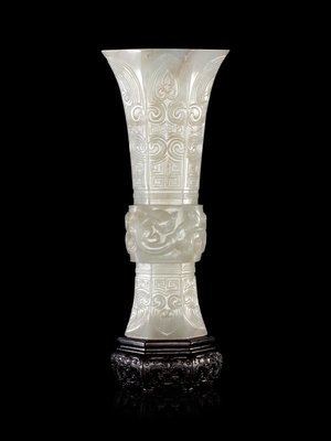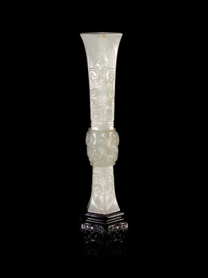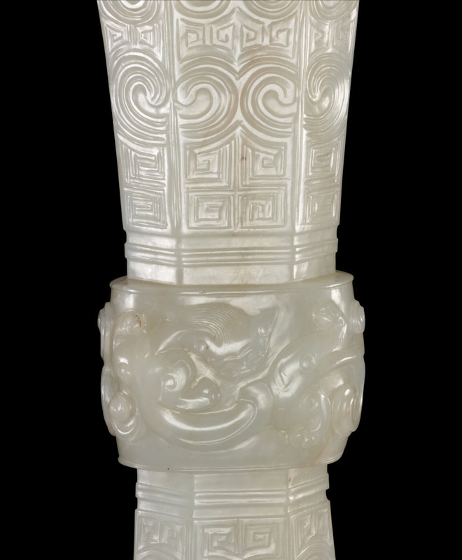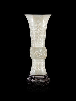 清十八世纪 白玉雕螭龙纹觚式瓶