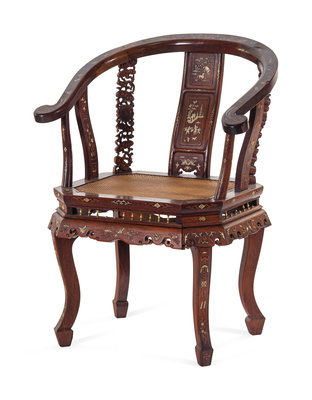 清晚期 黃花梨嵌寶圈椅