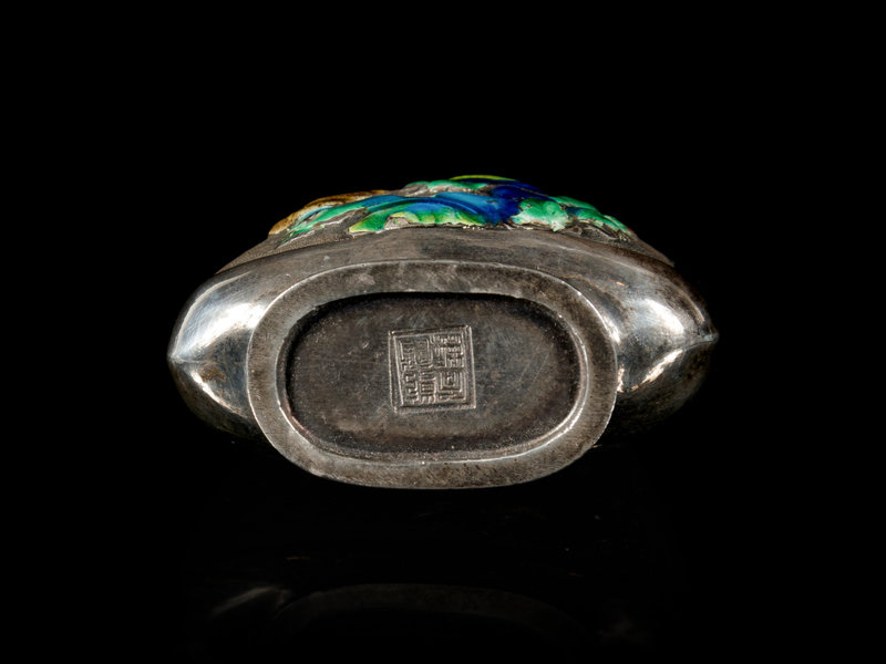乾隆年製 銀胎燒藍花鳥紋鼻煙壺