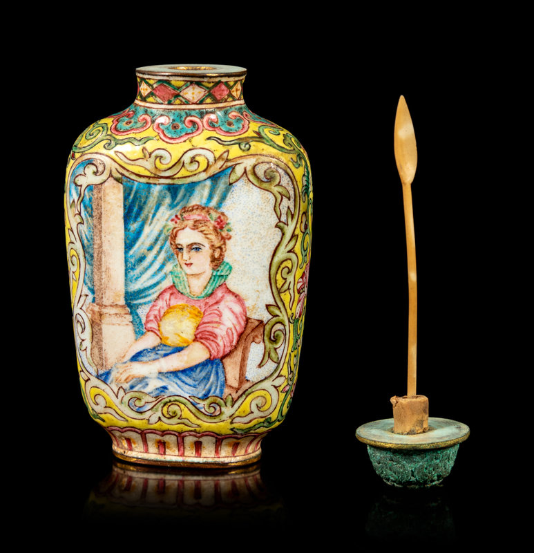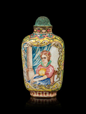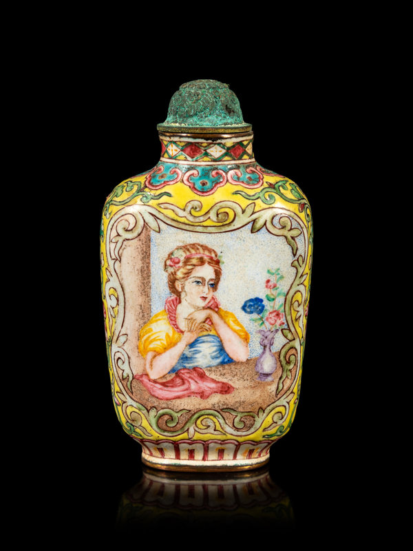二十世紀 銅胎畫琺瑯歐洲仕女圖鼻煙壺