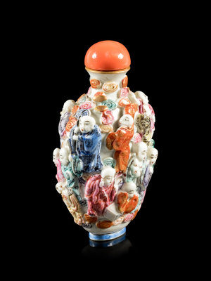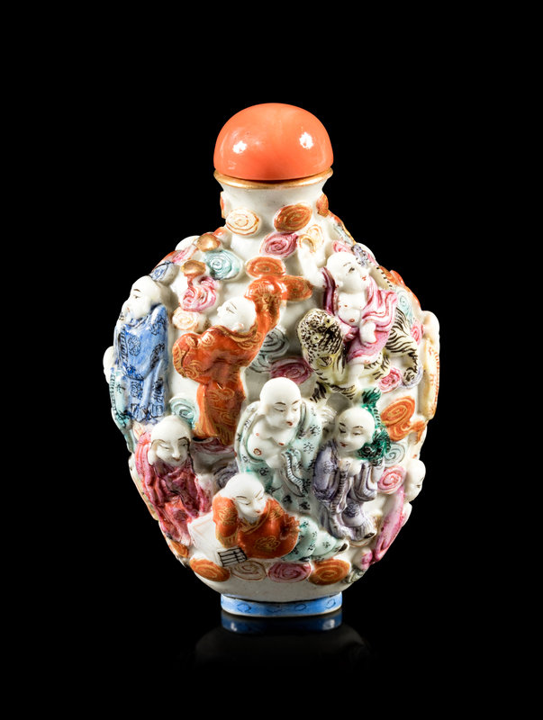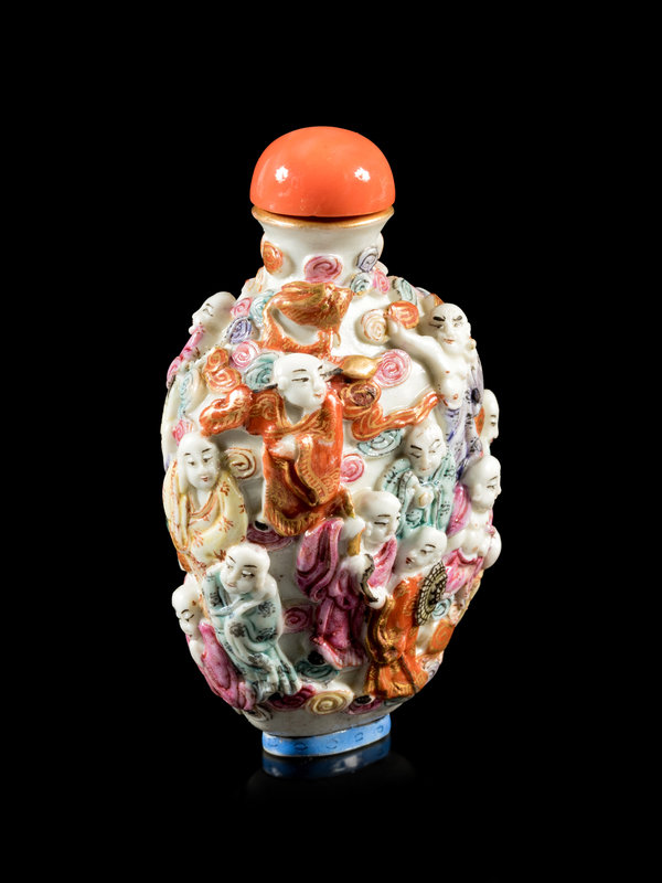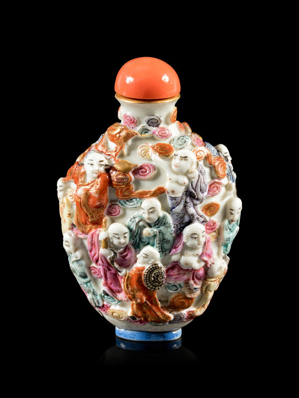 清十九世紀 粉彩模印十八羅漢圖鼻煙壺