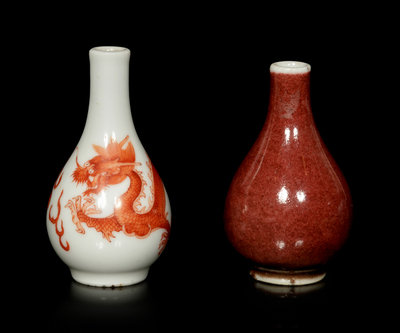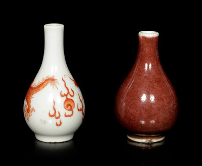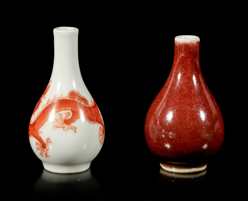 清十八/十九世紀 礬紅游龍趕珠紋鼻煙壺及祭紅釉鼻煙壺各一件
