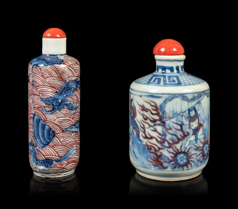清十九世紀 青花釉裡紅鼻煙壺兩件