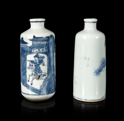 Two Unglazed Blue and Red Porcelain Snuff Bottle