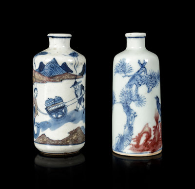 清十九世紀 青花釉裡紅鼻煙壺兩件