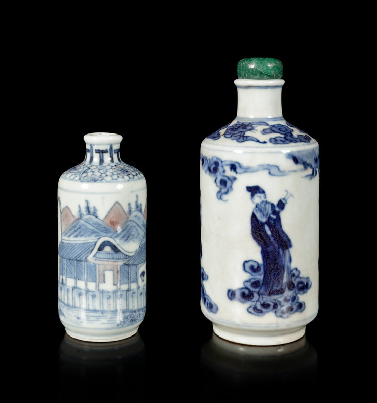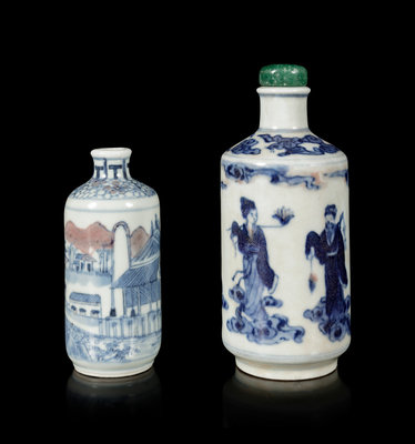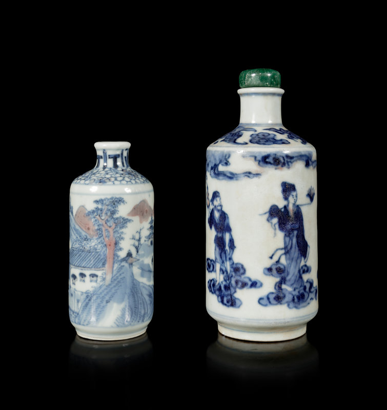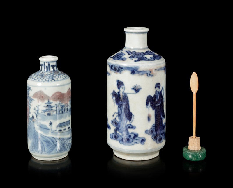 清十九世紀 青花釉裡紅鼻煙壺兩件