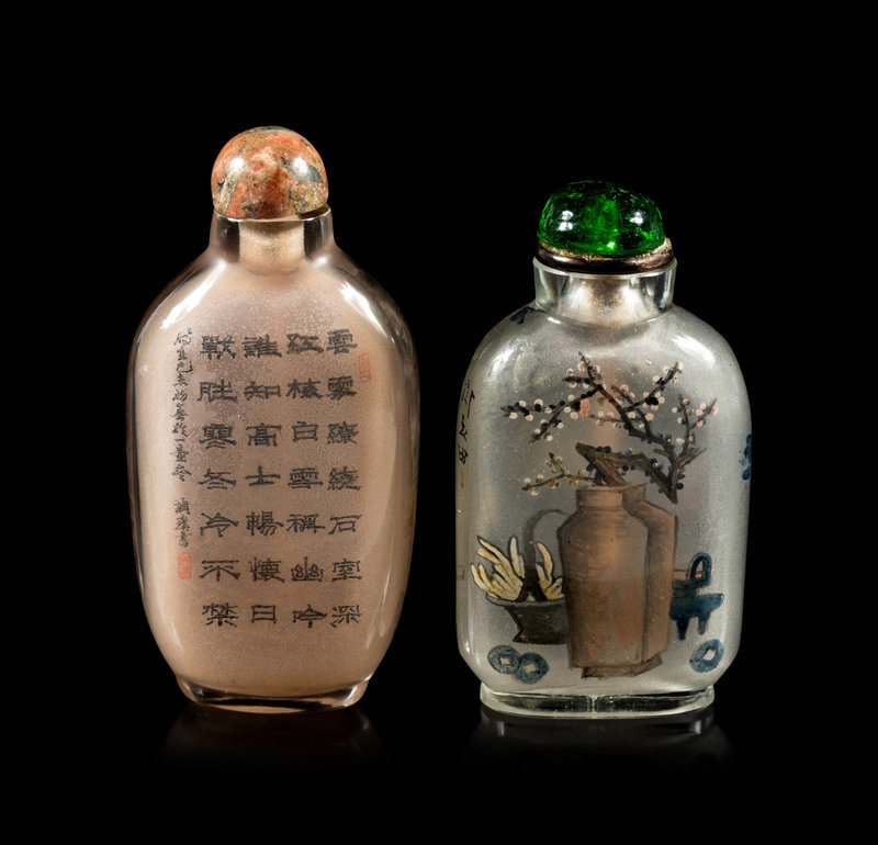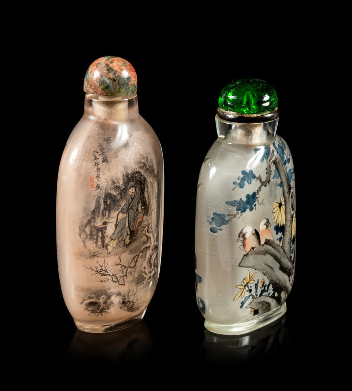 Two Inside Painted Glass Snuff Bottles